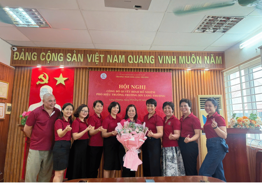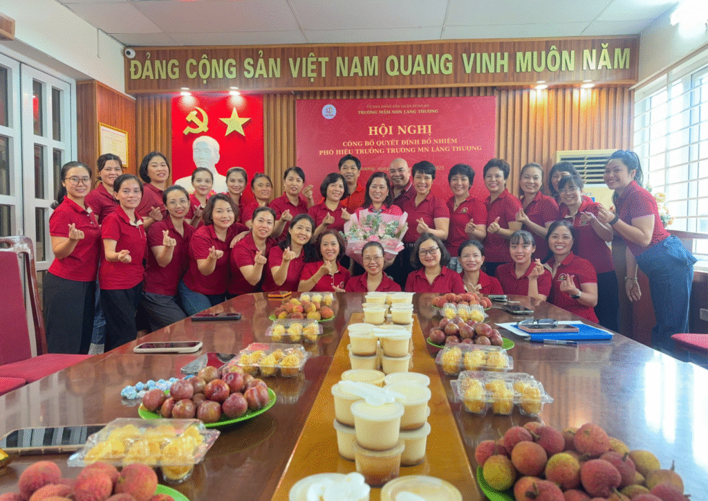 Thực hiện Quyết định số 2035/QĐ-UBND ngày 29/5/2025 của UBND quận Đống Đa về việc bổ nhiệm Đồng chí Ngô Thị Minh Thùy về làm phó hiệu trưởng trường mầm non Láng Thượng từ ngày 01/06/2025. Sáng nay, ngày 09/06/2025, trường Mầm non Láng Thượng đã tổ Hội nghị công bố quyết định bổ nhiệm đồng chí Ngô Thị Minh Thùy về làm phó hiệu trưởng trường mầm non Láng Thượng.