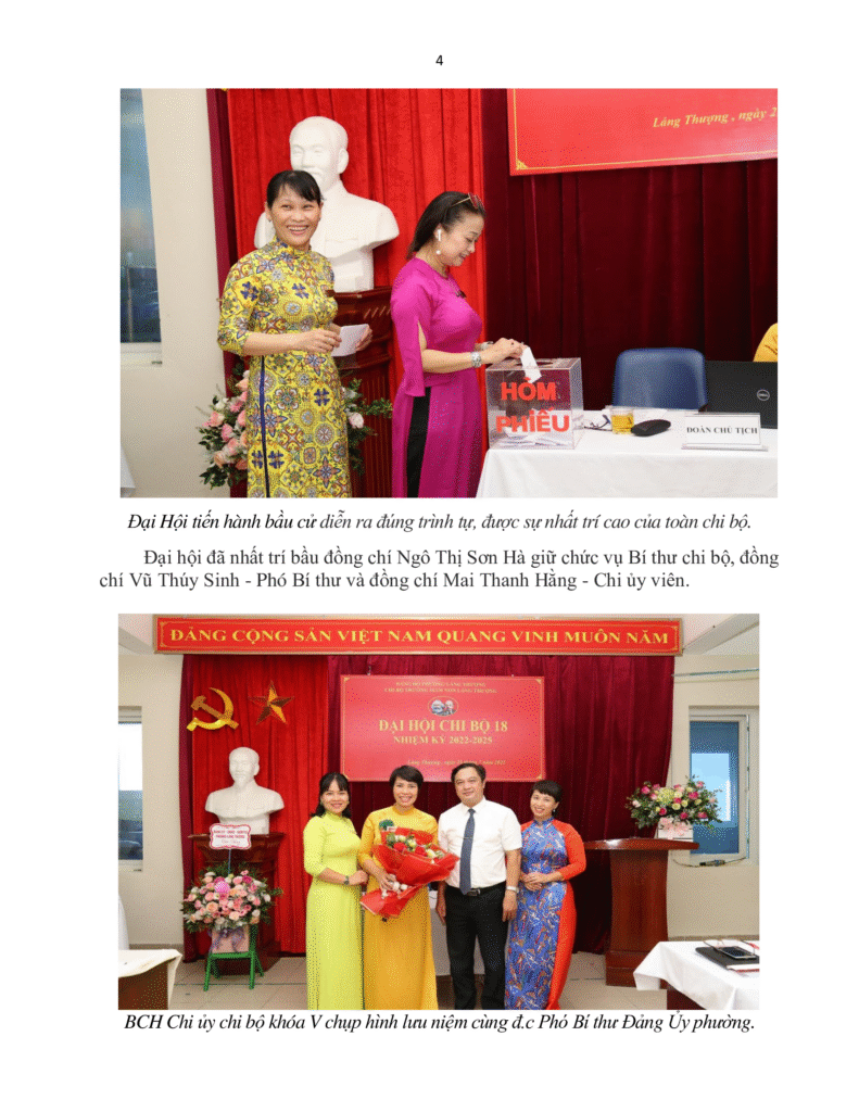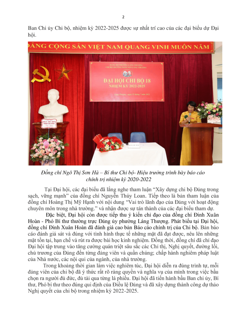 Trường mầm non Láng Thượng tổ chức thành công Đại hội chi bộ khóa V nhiệm kỳ 2022-2025